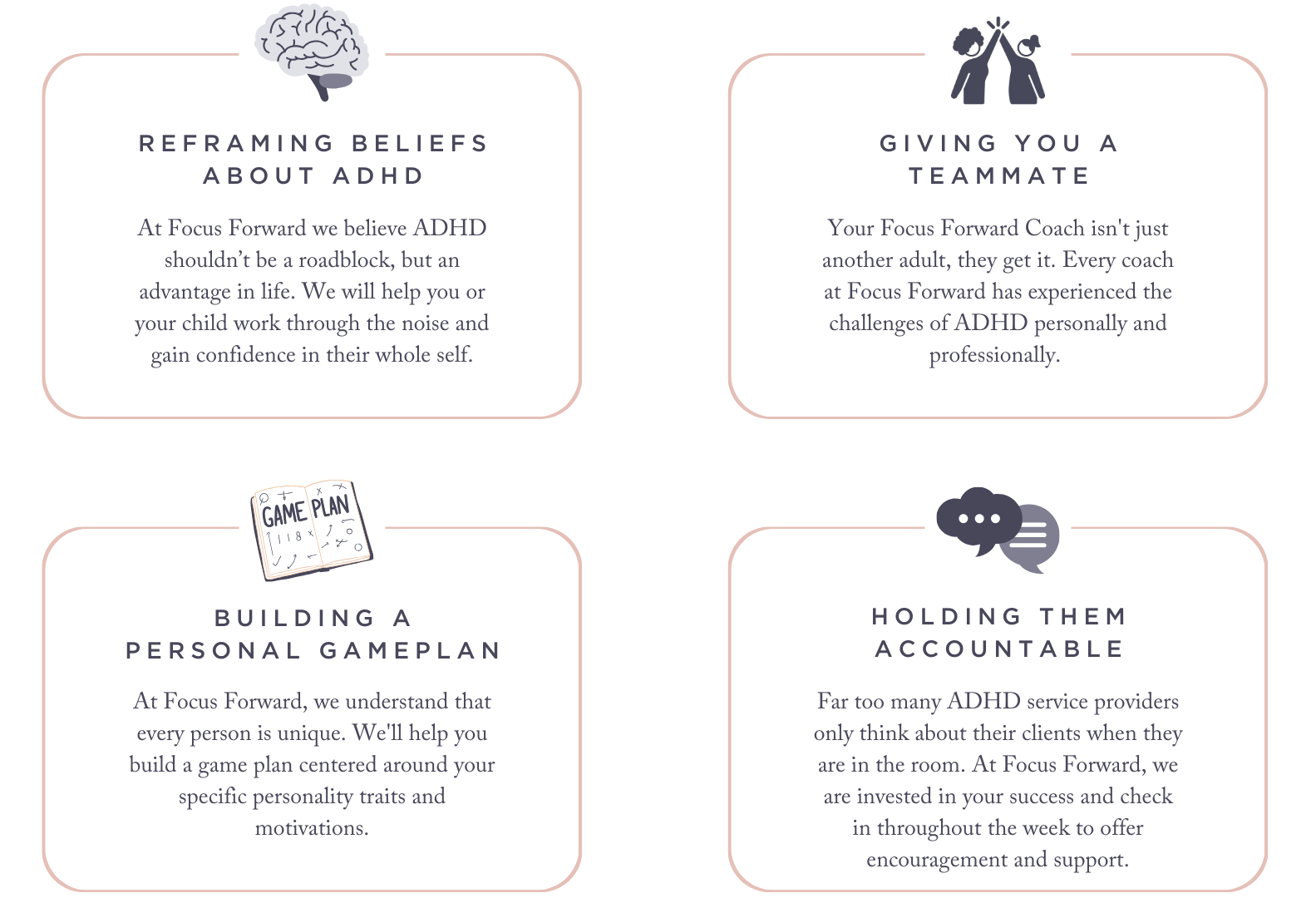 At Focus Forward, we help you build a personal game plan to thrive with your ADHD so that you or your child can take control of your lives.